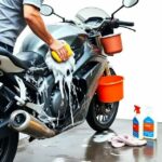 Motorradreiniger aufsprühen, 5–10 Min. einwirken lassen, abspülen.